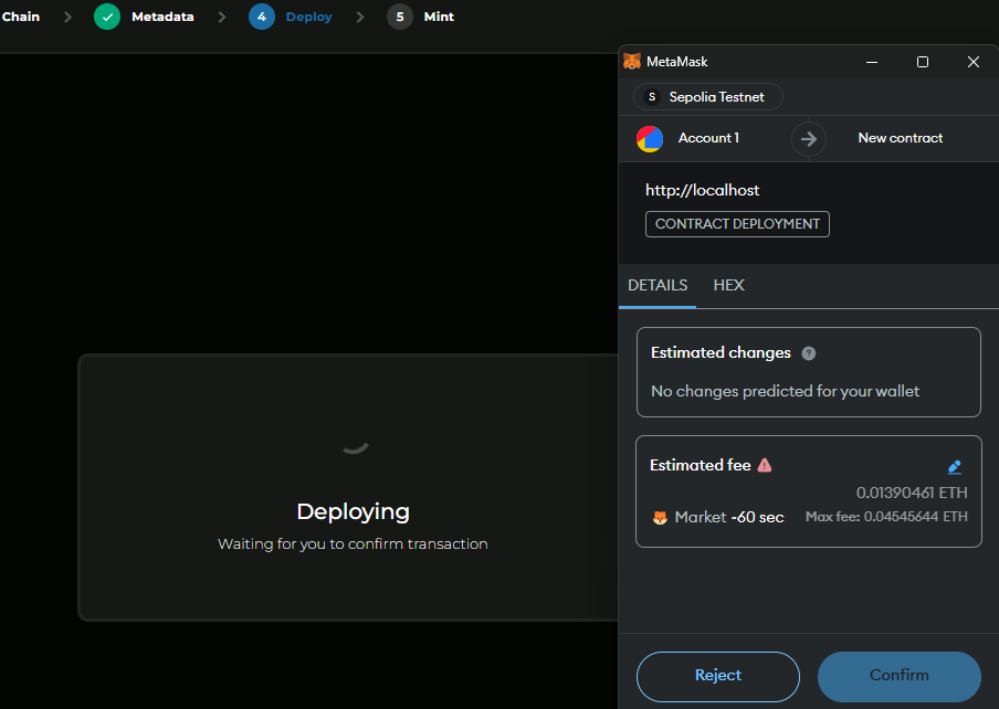 After confirming, please wait while the backend processes and verifies the deployment. This may take a few moments, depending on the network congestion
