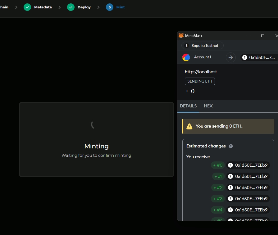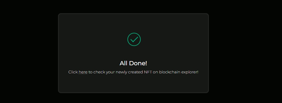 Once confirmed, the backend will process and complete the minting for the entire supply of your NFT collection